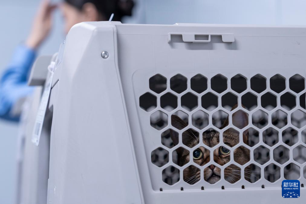 7月1日,一只宠物猫在专用宠物运输箱内。