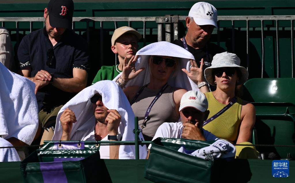 6月30日,在英国伦敦,观众在烈日下观看温布尔登网球公开赛。
