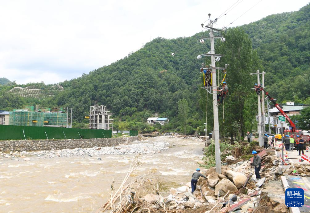 7月2日,西峡县电力部门工作人员在太平镇抢修电路。