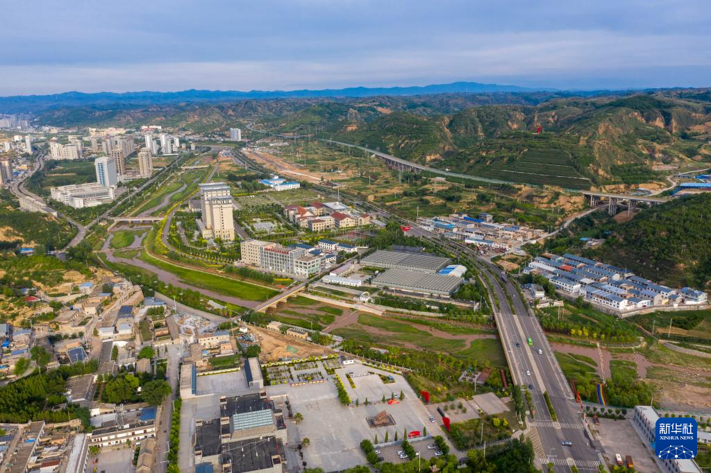 山西省吕梁市兴县县城一景(7月1日摄,无人机照片)。