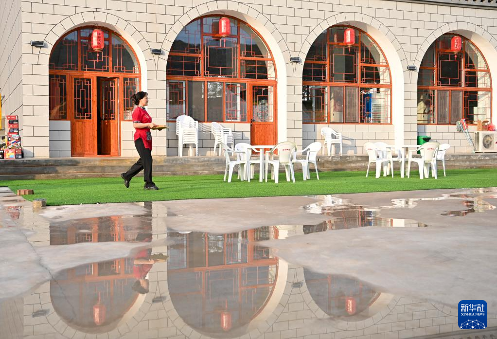 在山西省吕梁市兴县蔡家崖村的一处农家乐,工作人员准备饭菜(6月30日摄)。