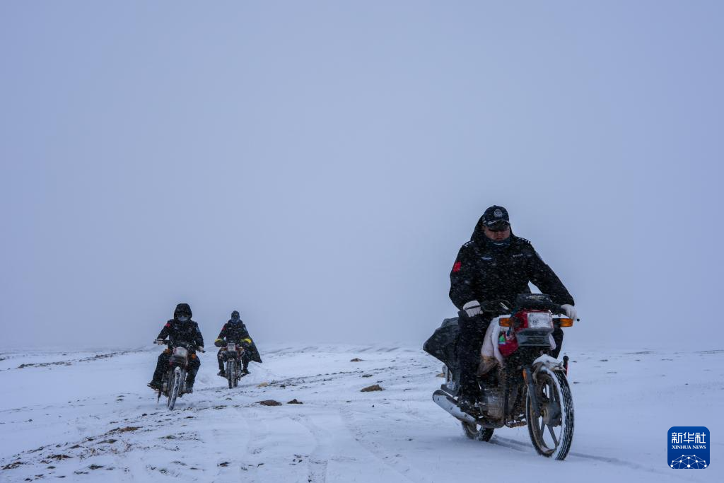 巡山队员在可可西里卓乃湖附近巡护(7月3日摄)。