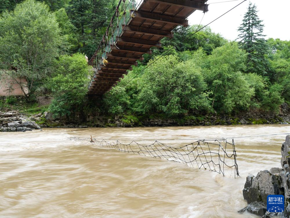 7月6日,在四川省阿坝县柯河乡,当地设置拦网搜救失联人员。
