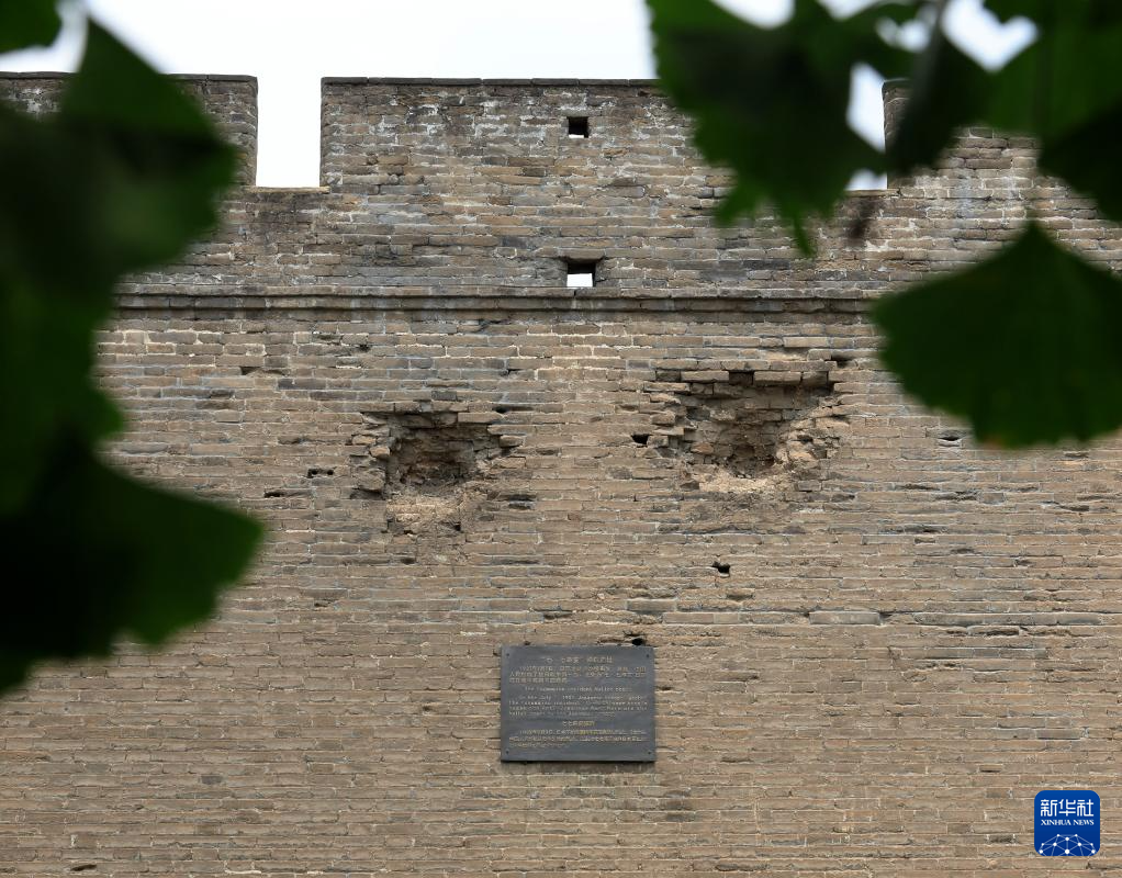 这是7月4日拍摄的宛平城城墙上的弹坑遗迹。