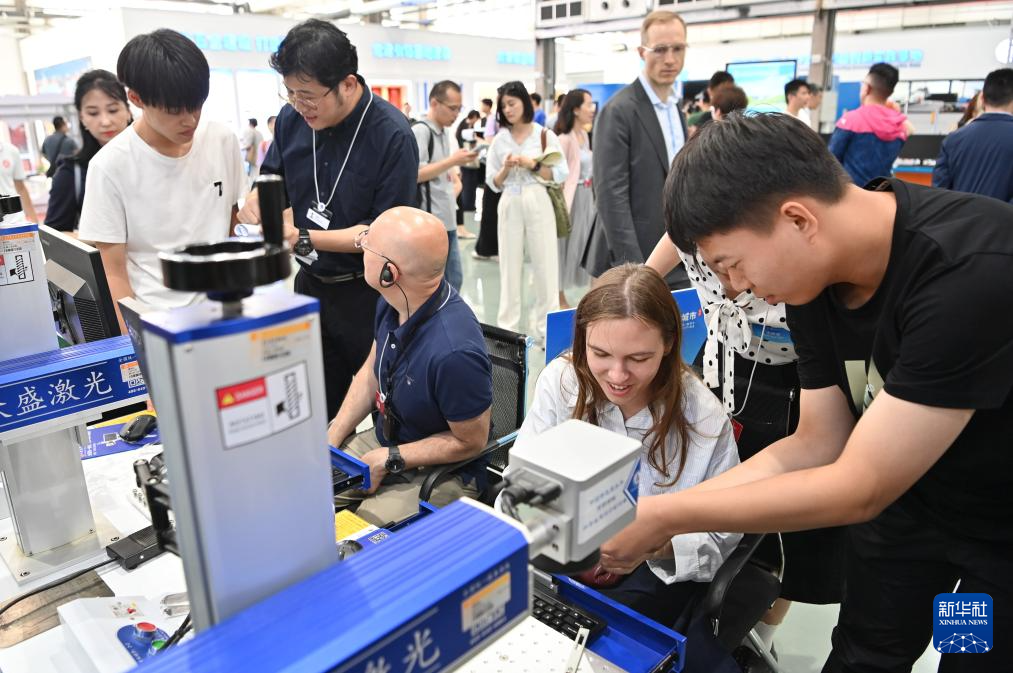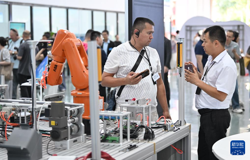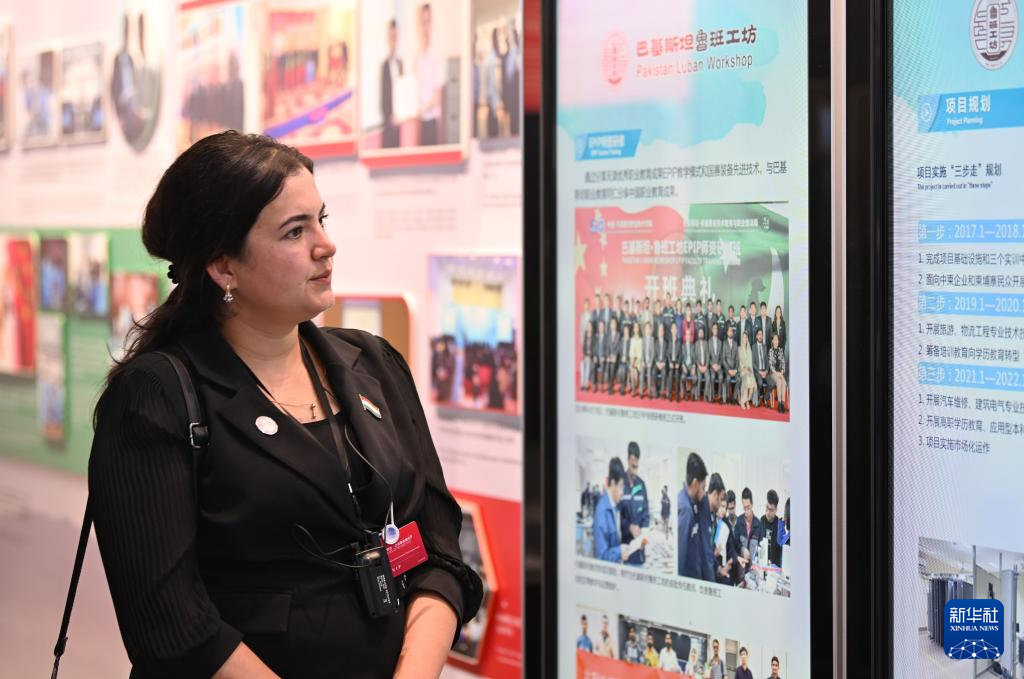 7月7日,嘉宾在鲁班工坊建设·体验馆参观。