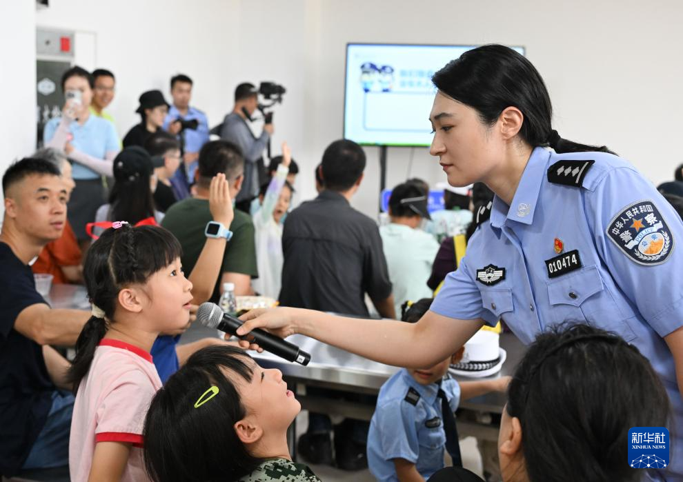 7月8日,平安广州宣讲团民警提问小朋友安全知识。