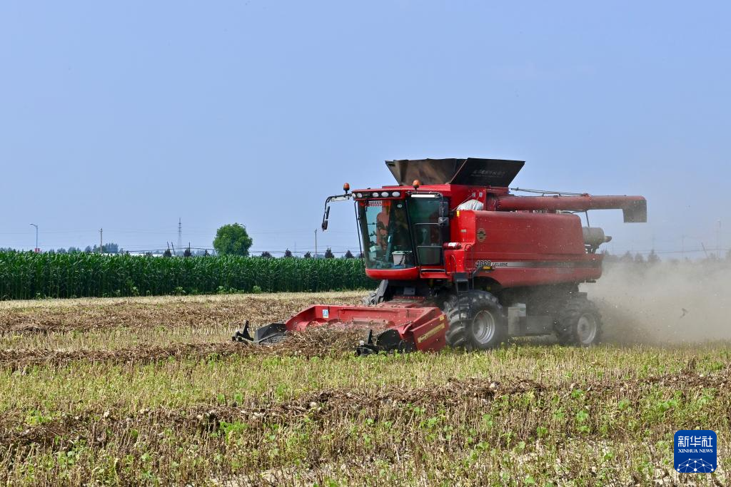 7月8日,收割机在作业,为后续播种大豆做准备。