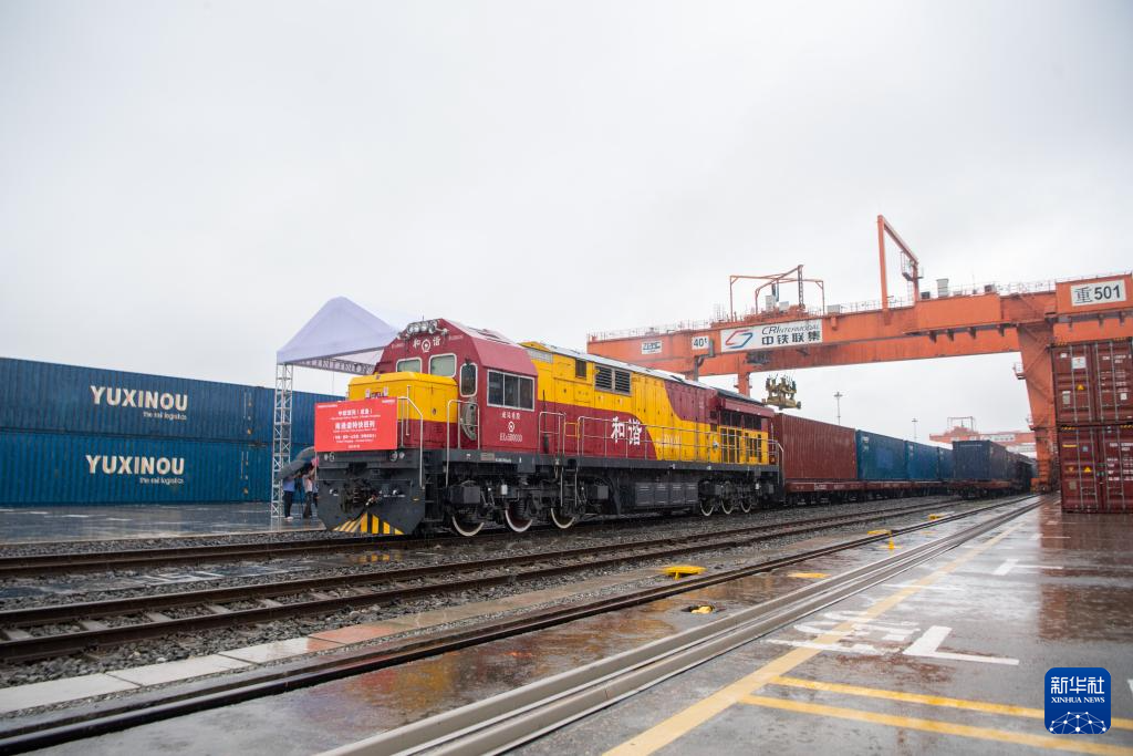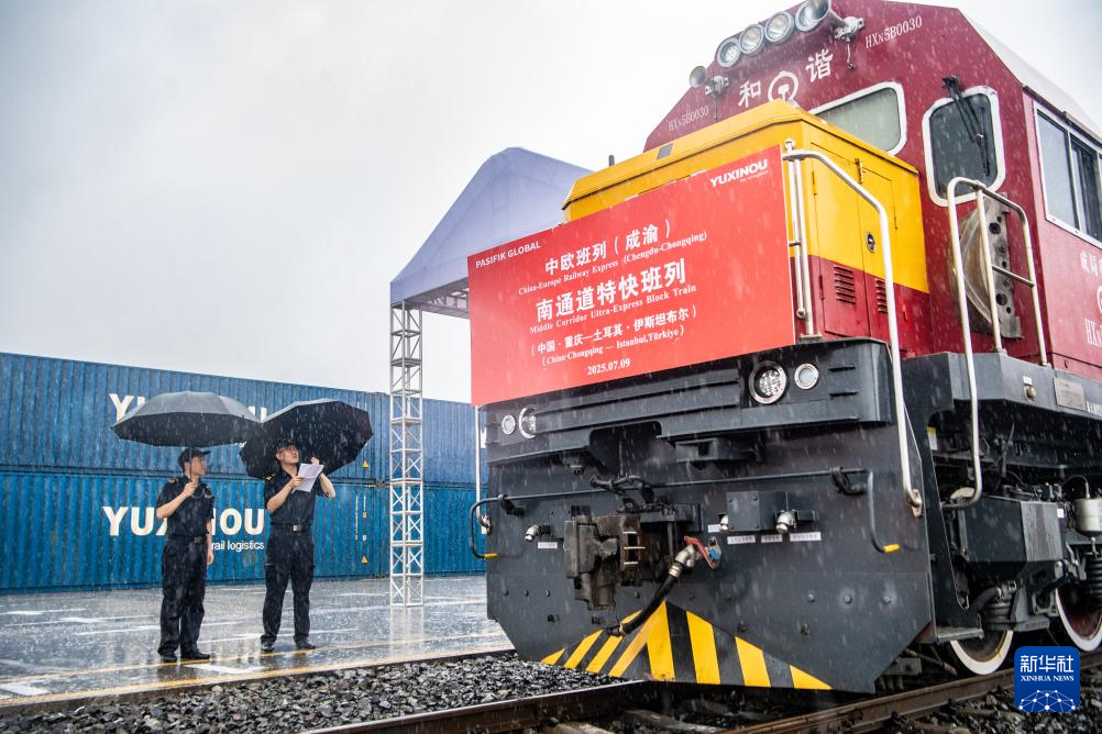 7月9日,中欧班列(成渝)南通道特快班列在重庆团结村中心站顺利发车。新华社记者 唐奕 摄
