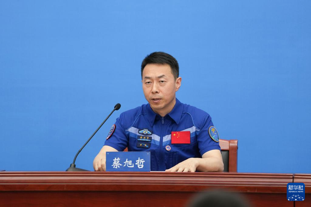 7月9日,在北京航天城,神舟十九号航天员蔡旭哲回答记者提问。