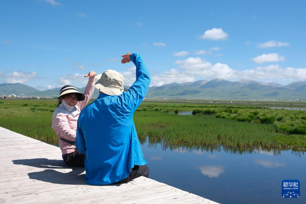 近日,四川阿坝藏族羌族自治州若尔盖县迎来暑期旅游旺季,来自各地的游客在自然美景中流连忘返。