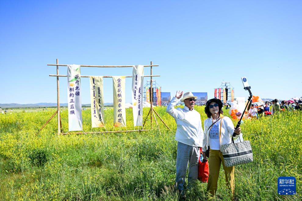 盛夏时节,内蒙古锡林郭勒盟正蓝旗金莲川草原迎来最佳观赏期,金黄色的花海与苍茫草原相映成趣,世界文化遗产元上都遗址的断壁残垣在草原上清晰可见。游人流连花丛中或驻足遗址前,感受自然野趣与历史文化。