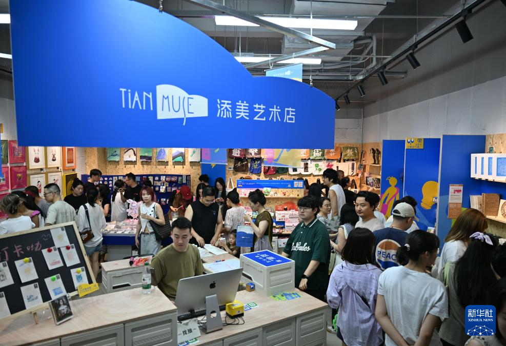 市民在天美艺术街区内的一家艺术店挑选商品(7月12日摄)。