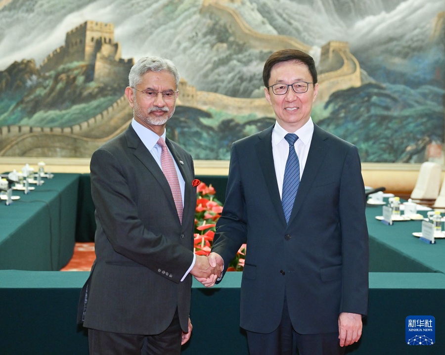 韩正表示,去年10月,习近平主席同莫迪总理在喀山成功会晤,引领中印关系重启再出发。中印都是发展中大国、全球南方重要成员,做相互成就的伙伴,实现“龙象共舞”,是双方正确选择。双方要进一步落实两国领导人达成的重要共识,坚持高层引领、稳步推进务实合作、尊重彼此关切,推动中印关系持续健康稳定发展。