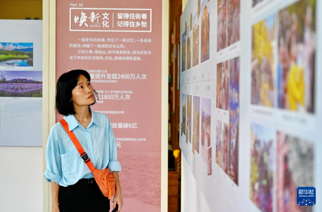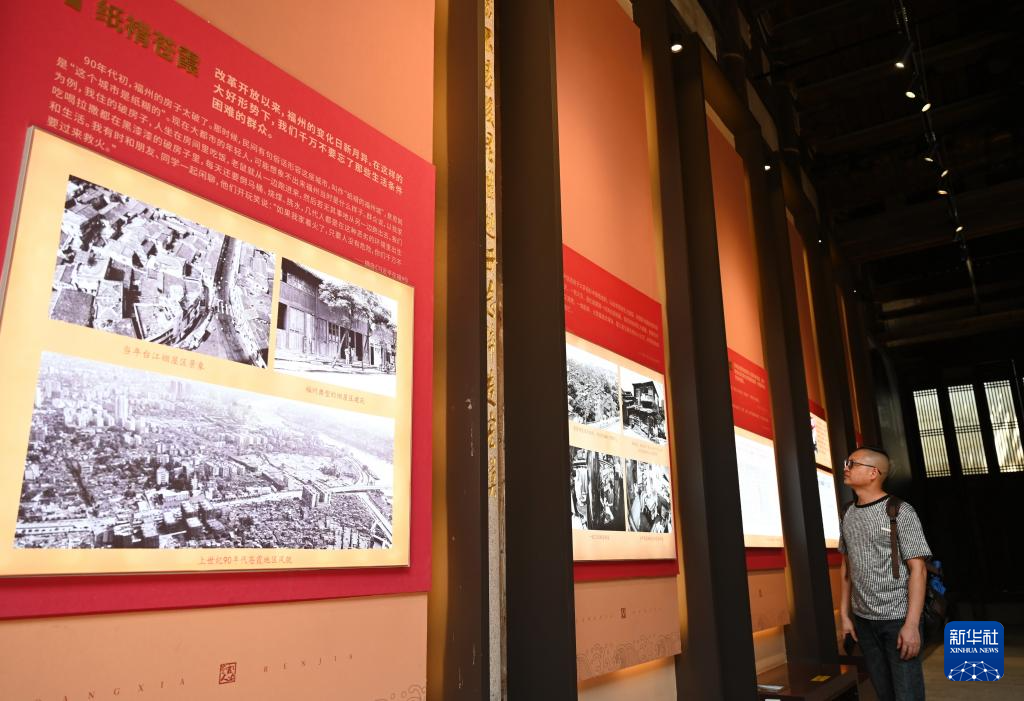 7月13日,参观者在苍霞新城观看“焕新福州——福州棚屋区改造25周年摄影展”。