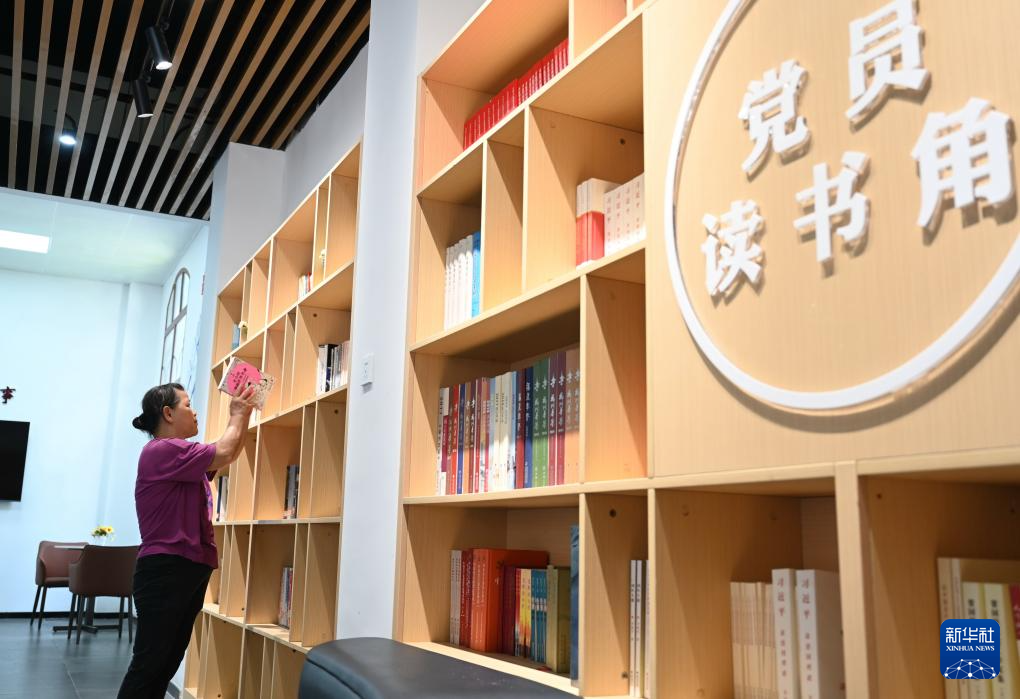 7月13日,居民在福州苍霞新城嘉和苑党群共享空间翻阅图书。
