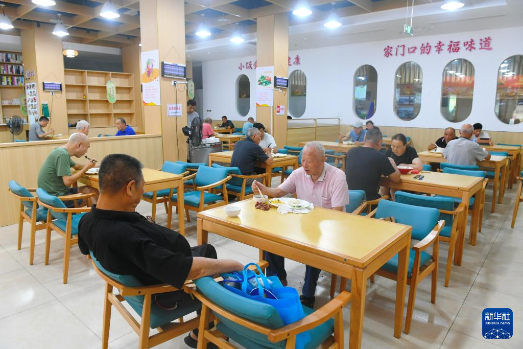 7月14日,居民在福州苍霞新城社区长者食堂午餐。