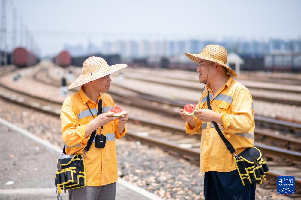 入夏以来,位于浙江省杭州市的中国铁路上海局集团有限公司乔司站、杭州北车辆段等单位积极做好职工的防暑降温工作,通过增设电扇、供应解暑饮品食品、配备防暑药品、增派人员缩短作业时间等措施,确保铁路职工平安度夏、保障铁路货运通畅。