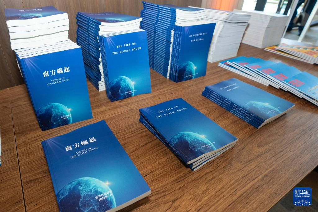 这是7月16日在巴西里约热内卢举行的金砖国家媒体智库高端论坛上拍摄的《南方崛起》多语种报告。新华社记者 王天聪 摄