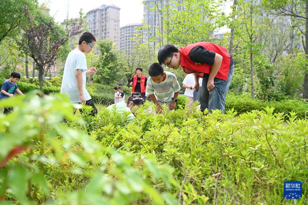 7月17日,返乡大学生志愿者带领公益暑托班的孩子们在屏南县东湖公园开展昆虫科普知识小课堂。