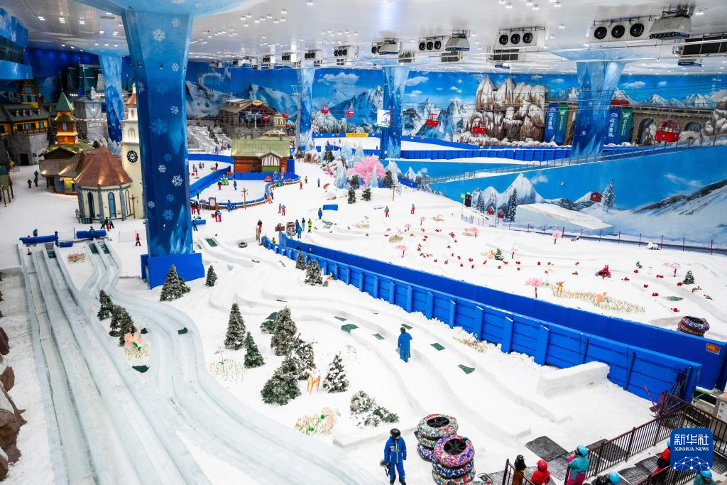 当日,湖南长沙发布当地今年首个高温红色预警,部分区域最高气温升至40℃以上。位于长沙大王山旅游度假区的湘江欢乐城欢乐雪域迎来众多游客。据了解,这是湖南最大冰雪综合体之一,深入地下36米打造,温度常年保持在零下5℃左右,拥有3万平方米的滑雪与娱雪区域,能为游客带来“夏日玩雪”的奇妙体验。