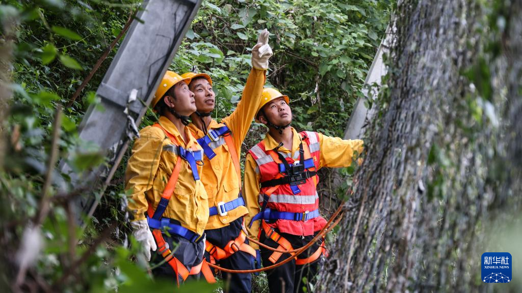桥隧工人巡查被动网状态(7月15日摄)。