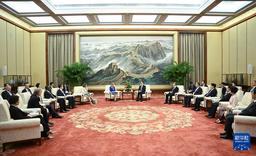 7月17日,国家副主席韩正在北京会见出席“可持续市场倡议”中国论坛代表团。新华社记者 谢环驰 摄