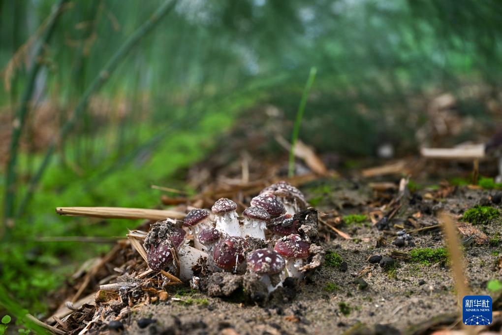 这是西藏扎囊县绿之源现代农业科技股份有限公司有机芦笋大棚内发展“芦笋林下经济”试种成功的赤松茸(7月19日摄)。