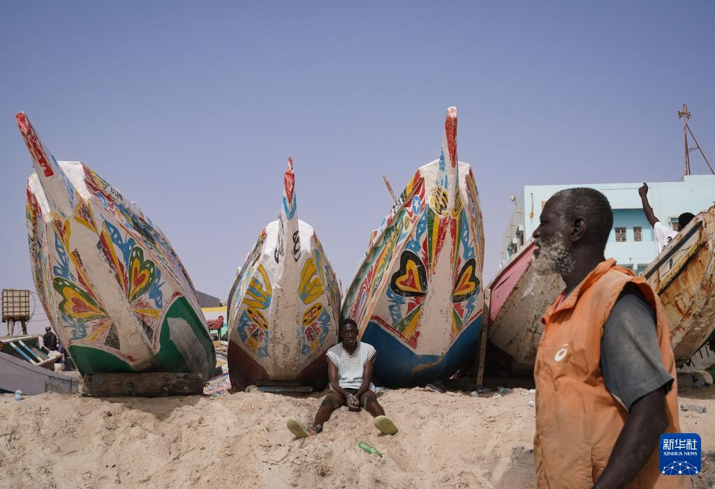 7月14日,一名渔民在毛里塔尼亚首都努瓦克肖特的渔港休息。