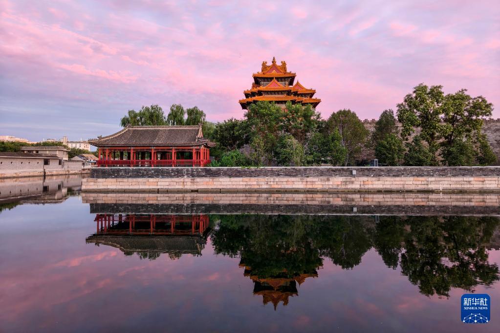 晚霞中的北京故宫东北角楼(手机照片,7月20日摄)。
