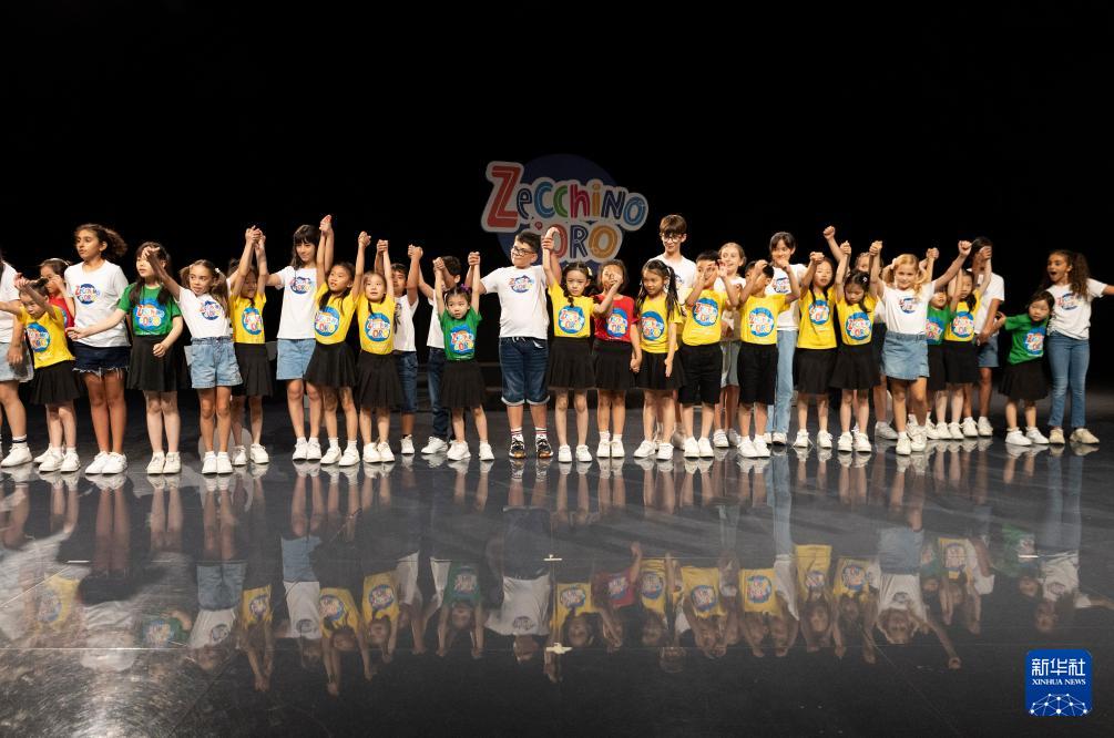 当日,来自中国上海的绣球花小合唱团与意大利安东尼亚诺小合唱团在博洛尼亚共同演唱意大利经典儿歌,展示2025夏令营的学习交流成果。