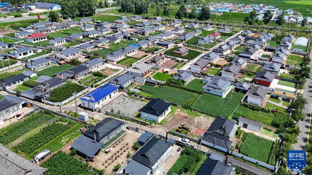 这是7月18日在吉林省和龙市光东村拍摄的特色民居群(无人机照片)。