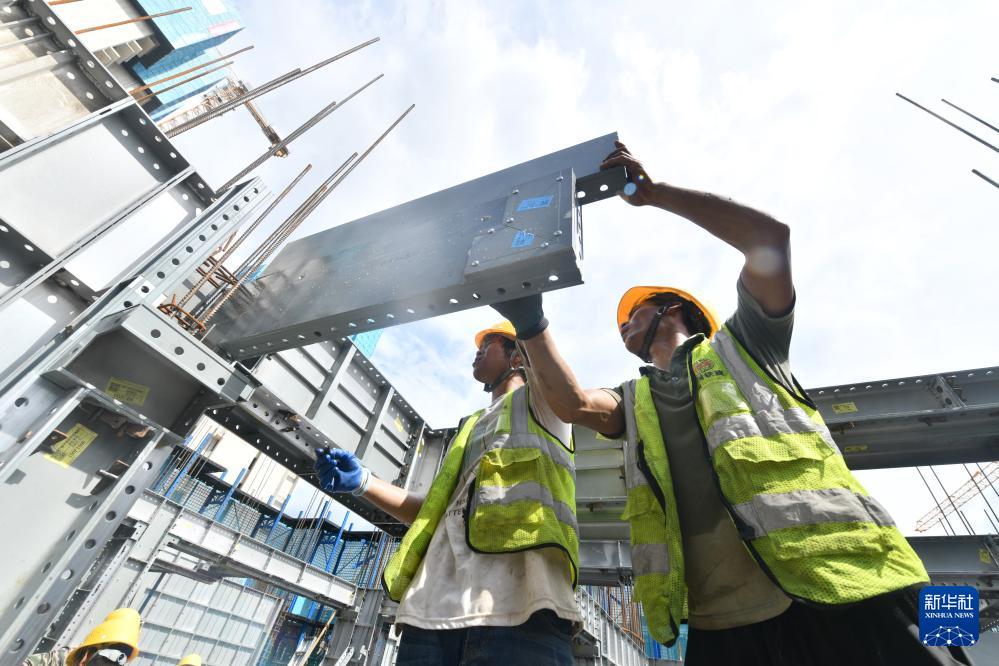 7月21日,中铁二十局工人在南宁市鸡村城中村改造项目建设现场施工作业。