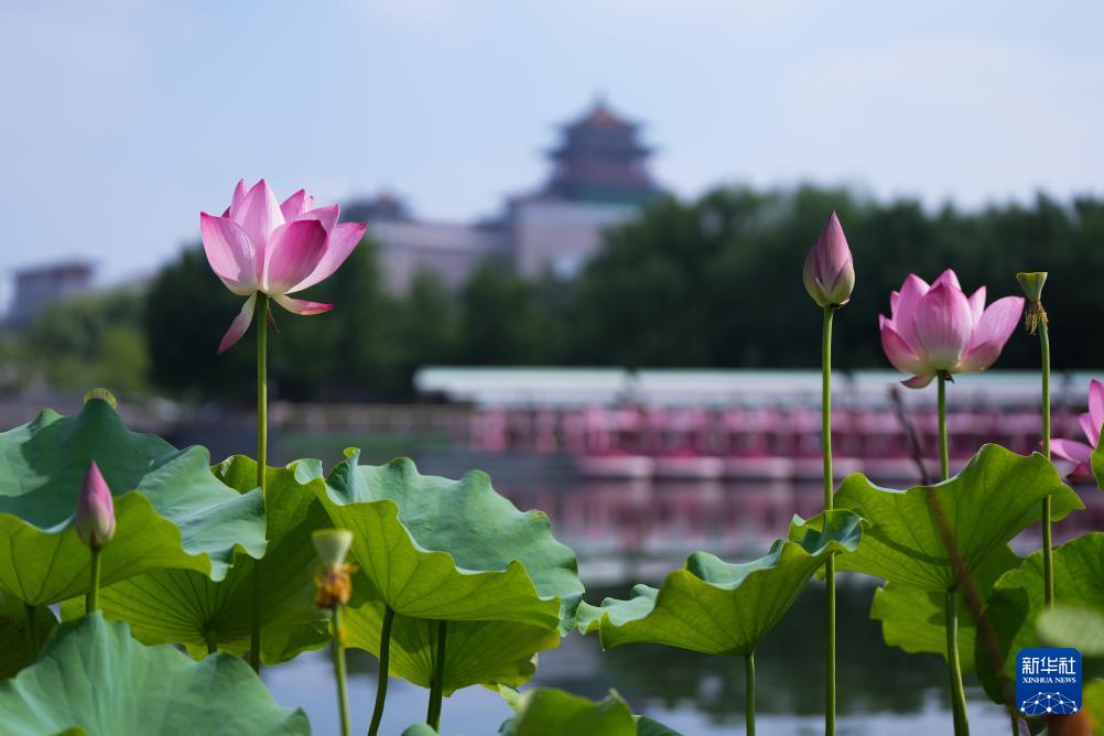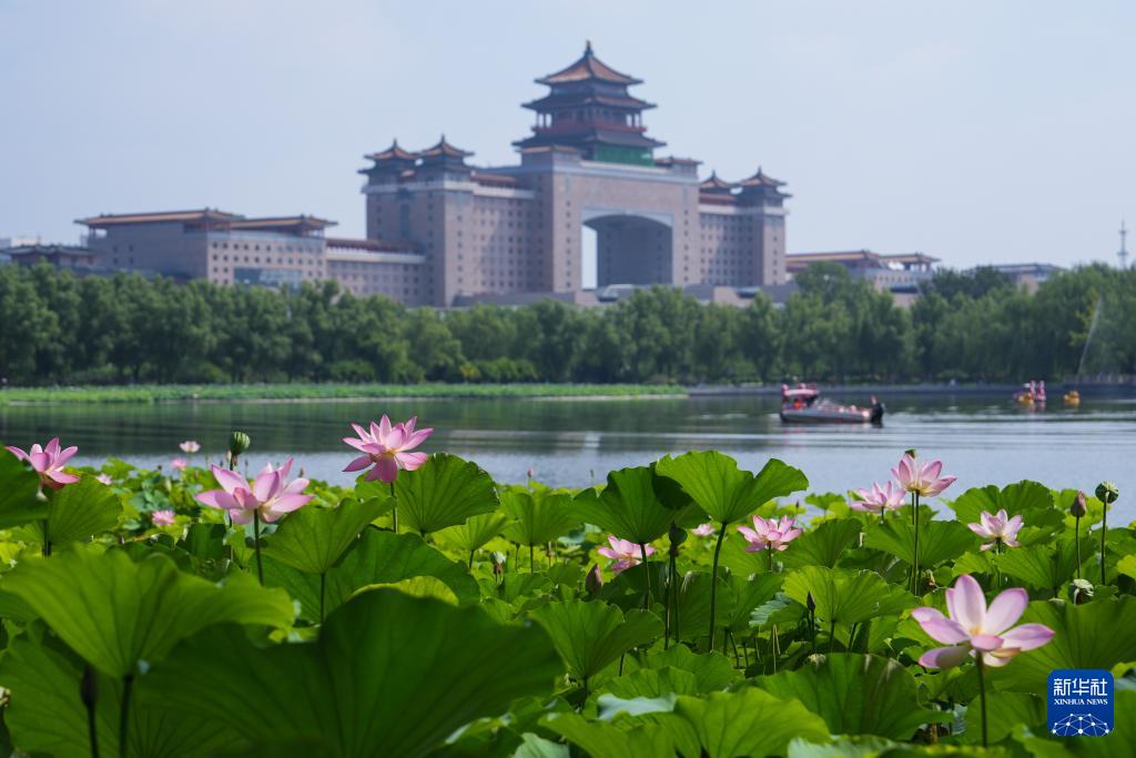 盛夏时节,北京的公园里荷花盛开,美不胜收。