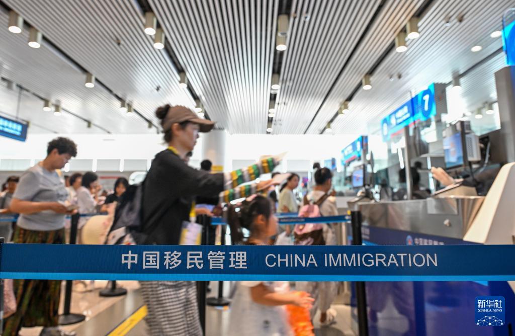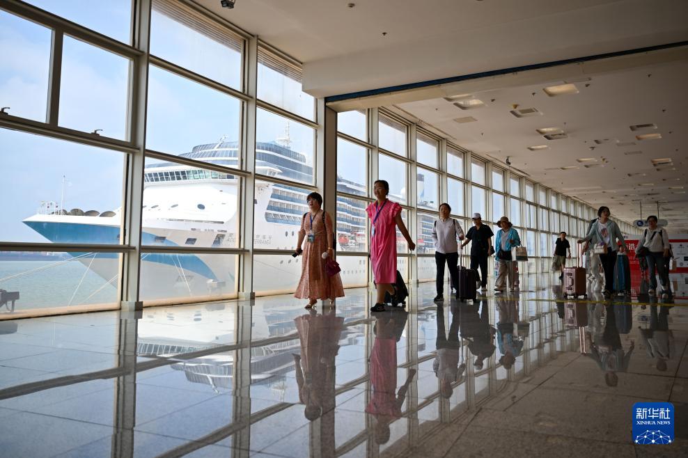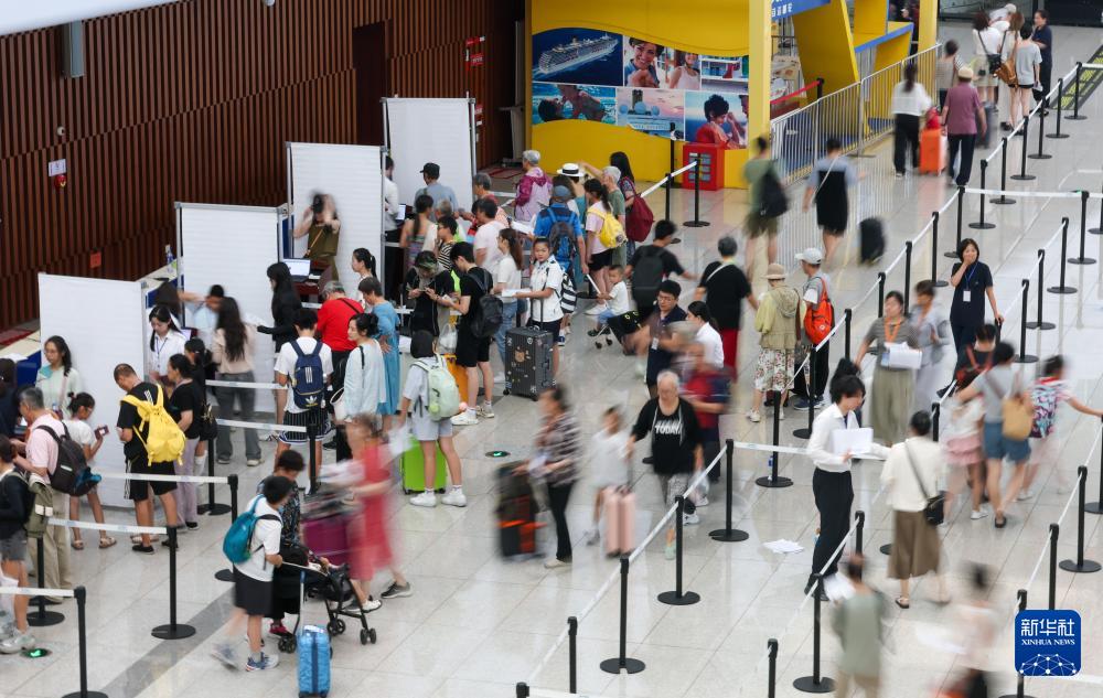 7月23日,旅客在天津国际邮轮母港办理入境手续。