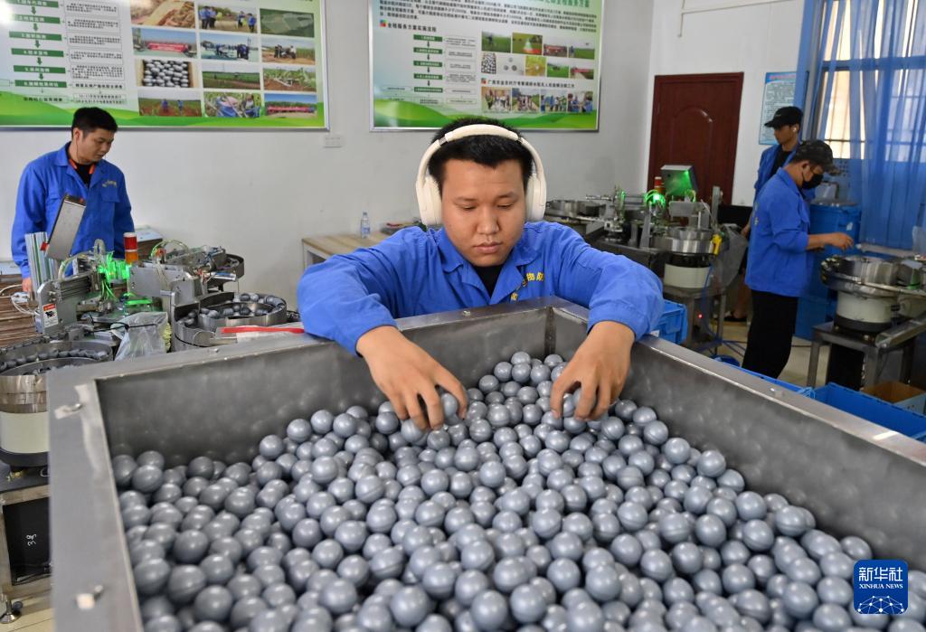 7月23日,在广西南宁市国家生防天敌扩繁基地,工作人员生产螟黄赤眼蜂释放球。