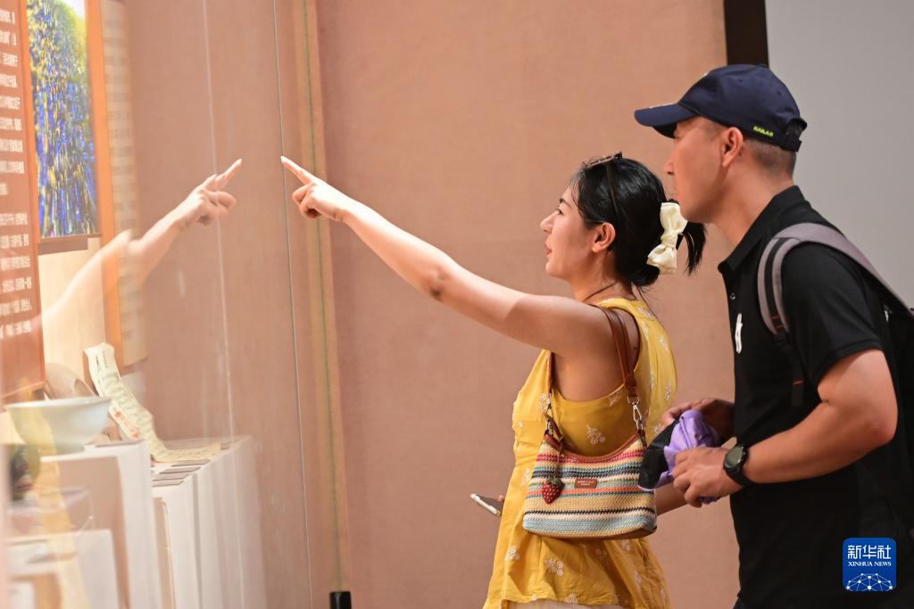 游客在新疆伊犁哈萨克自治州伊宁市伊犁老城喀赞其文化旅游区石榴花展览馆参观(7月23日摄)。