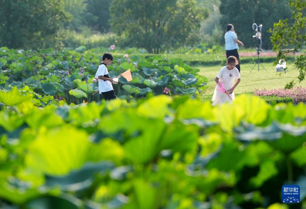 7月21日,儿童在汉中市天汉湿地公园内嬉戏。