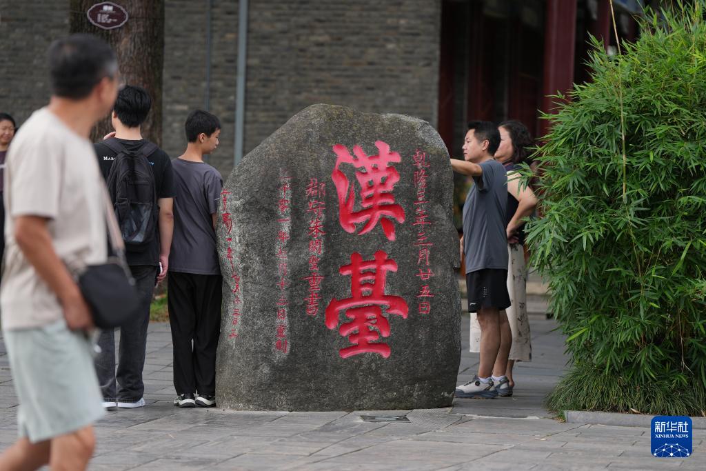 7月22日,游客在汉中市博物馆内的古汉台遗址参观。
