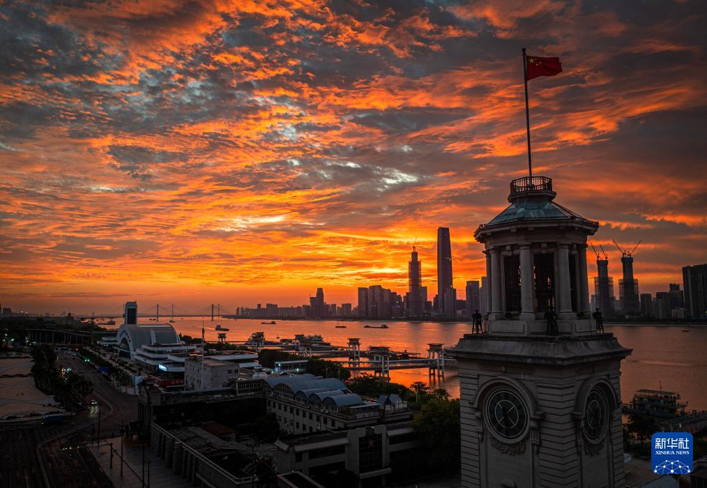 7月26日清晨在湖北省武汉市江汉关拍摄的朝霞(无人机照片)。