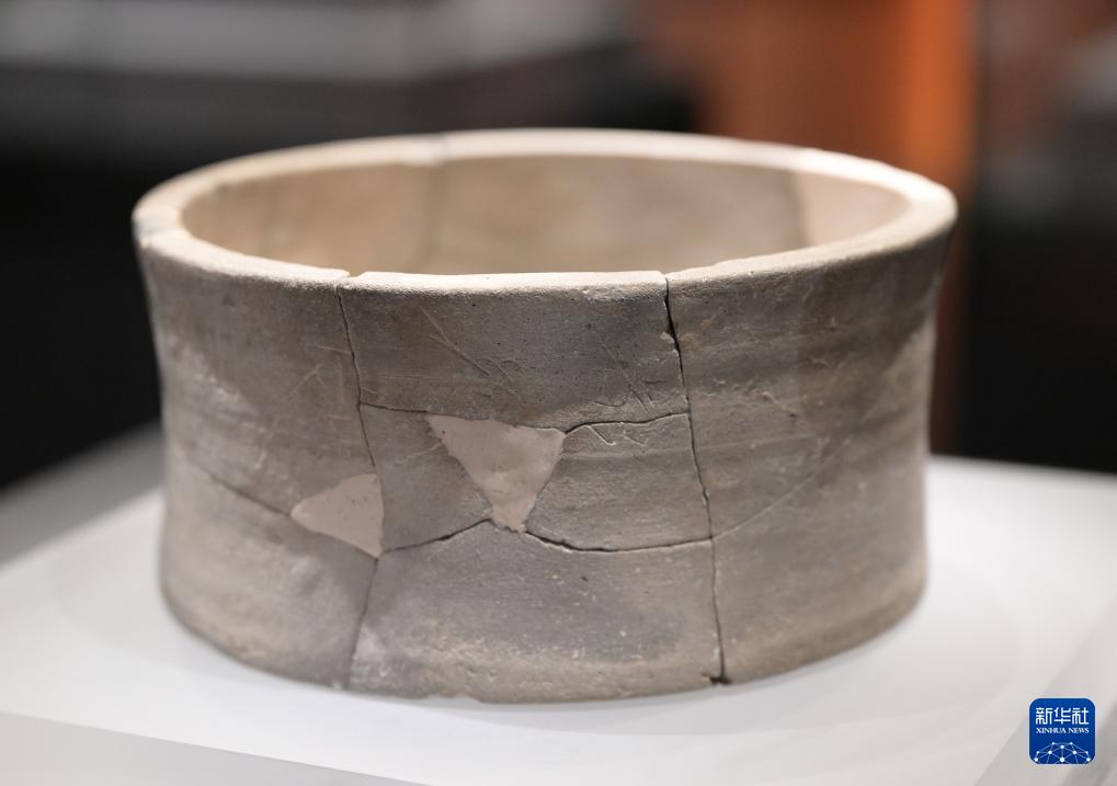 这是一件出土自雄安古州城遗址的战汉时期的陶量(7月28日摄)。