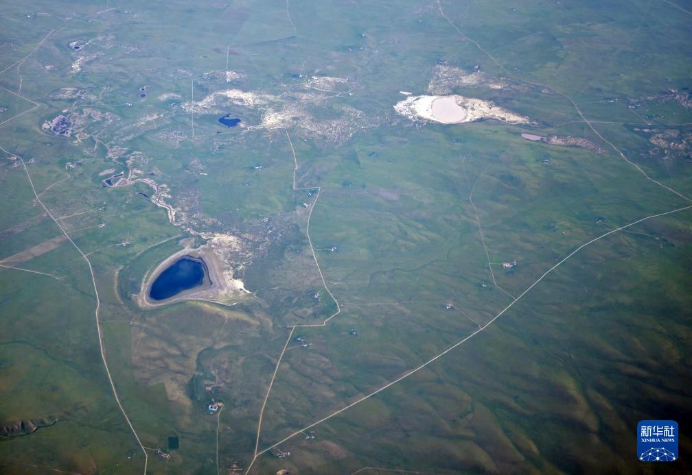 内蒙古锡林郭勒草原上的湖泊(7月29日摄,手机照片)。