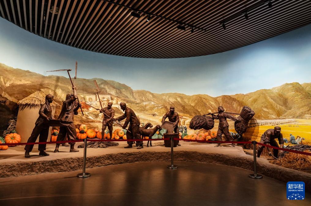 这是南泥湾大生产纪念馆内的雕塑作品(7月29日摄)。