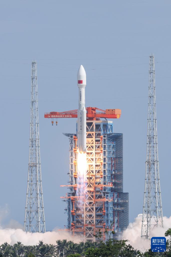 7月30日15时49分,我国在海南商业航天发射场使用长征八号甲运载火箭,成功将卫星互联网低轨06组卫星发射升空,卫星顺利进入预定轨道,发射任务获得圆满成功。新华社记者 张丽芸 摄
