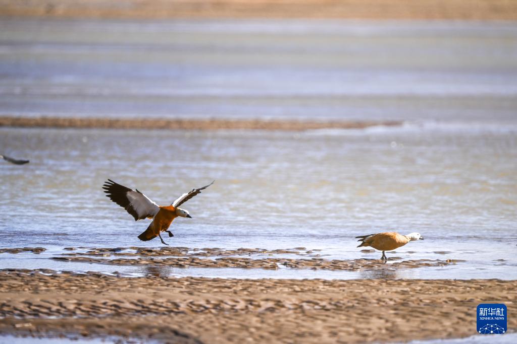 2025年4月22日在内蒙古阿拉善盟额济纳旗弱水河拍摄的赤麻鸭。