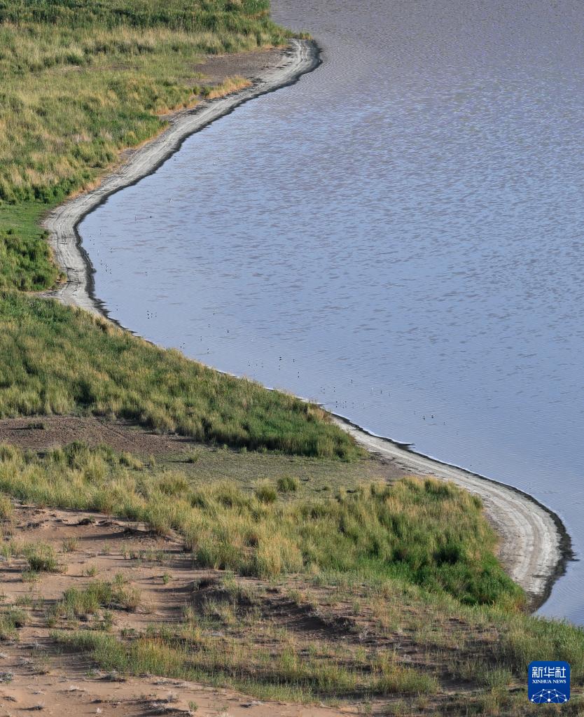 2024年7月30日在内蒙古阿拉善盟阿拉善右旗拍摄的巴丹吉林沙漠中的湖泊(无人机照片)。