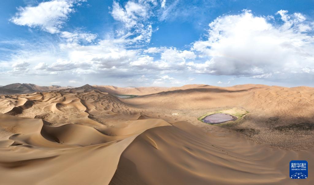 2024年7月30日在内蒙古阿拉善盟阿拉善右旗拍摄的巴丹吉林沙漠(无人机拼接照片)。