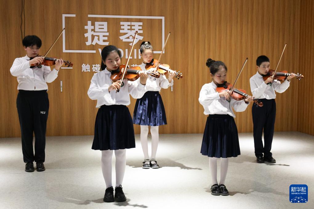 7月24日,在河南省驻马店市确山县的确山提琴产业园,参加小提琴培训班的学生在演奏。