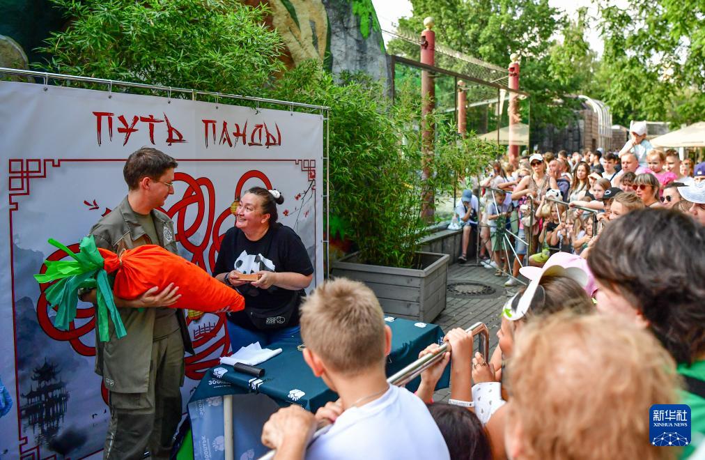 当日,莫斯科动物园举行活动,为旅俄大熊猫"如意"庆祝9岁生日。