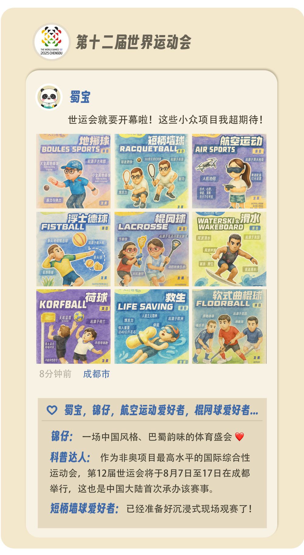 九宫格海报速存!蜀宝带你看成都世运会小众项目