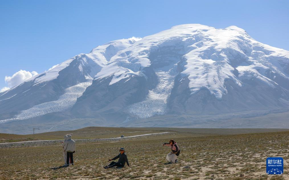 8月3日,游客在新疆塔什库尔干塔吉克自治县慕士塔格冰川公园游玩。